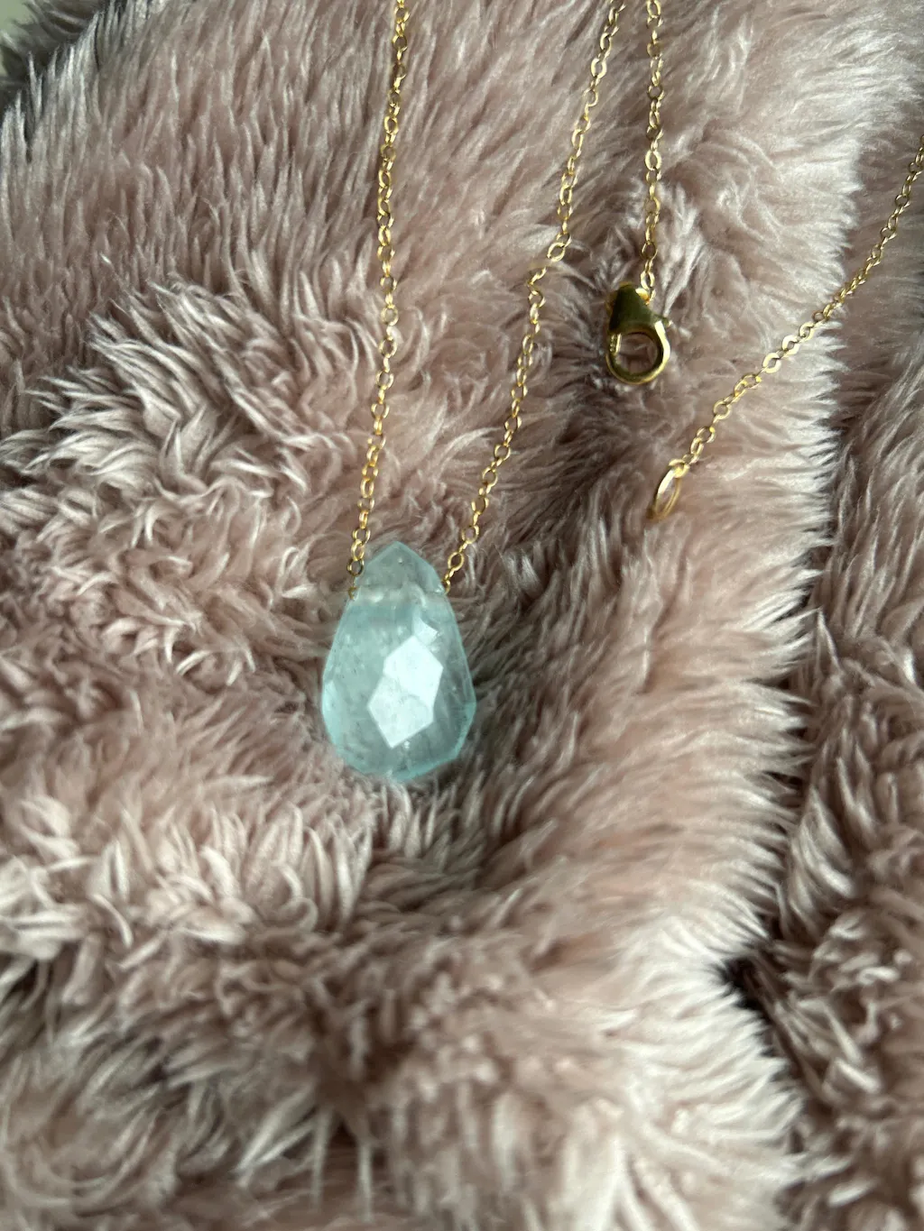Lovely piece of aquamarine. I’ve been eyeing the “It Girl” for a while and decided to hit buy. Much bigger piece of aquamarine crystal than I expected. The clasp isn’t one of those dinky things you can never hook, this one has some heft making it easy on and off!